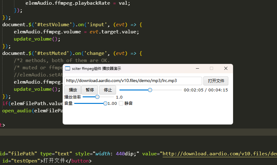 sciter调用ffmpeg做播放器示例