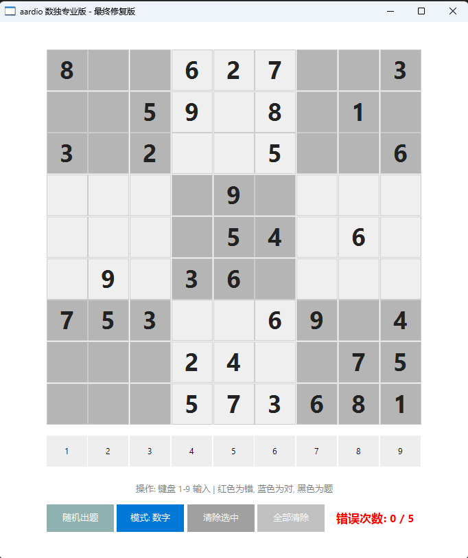 var mainWin = win.form(text="aardio 数独专业版 - 最终修复版";right=683;bottom=780;bgcolor=0xFFFFFF)
