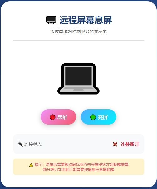 ⚠️ 提示:息屏后需要移动鼠标或点击亮屏按钮才能唤醒屏幕<br>